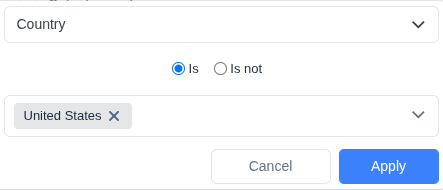Click Apply to confirm. For example, if you choose Country - Is not - United States, this path will not receive traffic from the U.S.