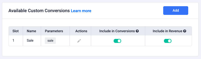 Go to Settings → Custom Conversions