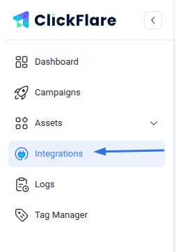 To add a DomainActive integration to your ClickFlare account, begin by accessing the Integrations Menu, found in the left sidebar.