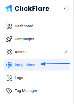 To add ExplorAds integration to your ClickFlare account, begin by accessing the Integrations Menu found on the left sidebar.