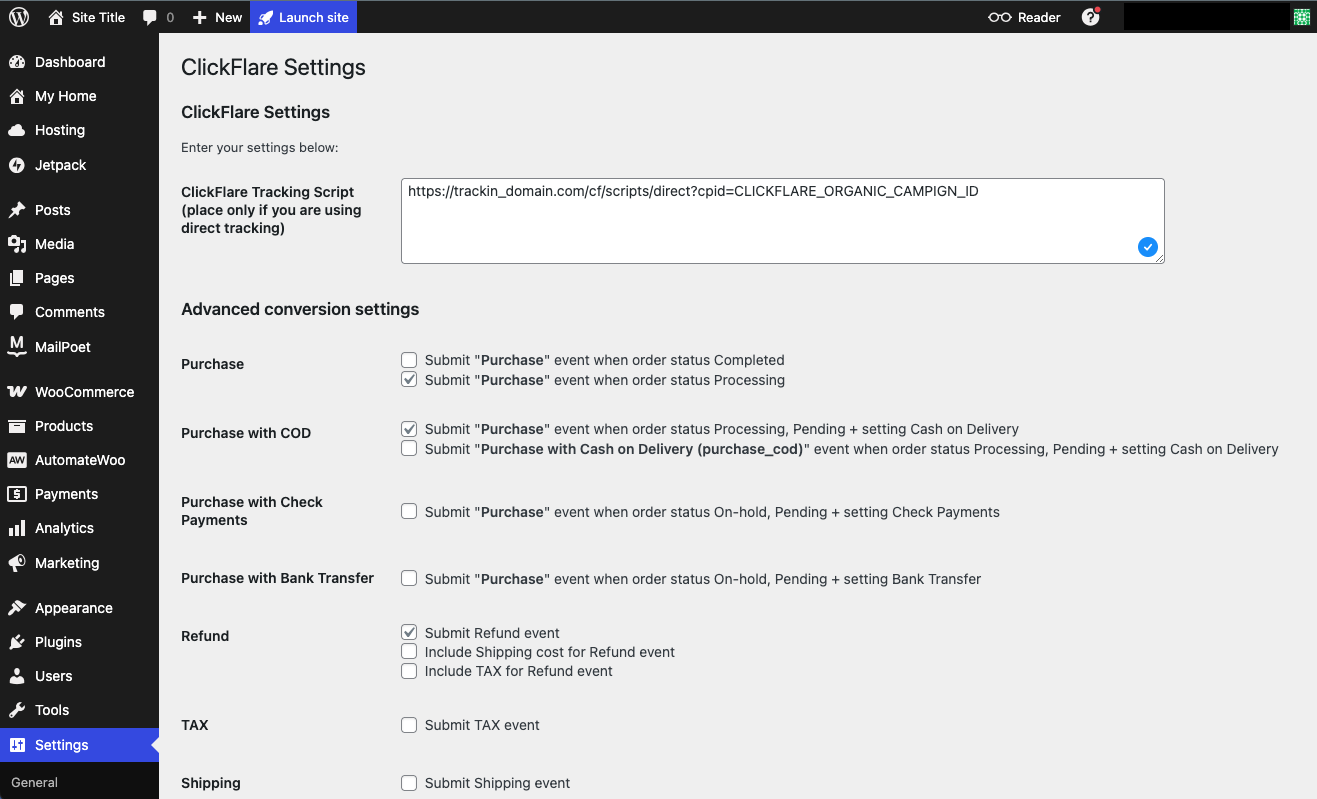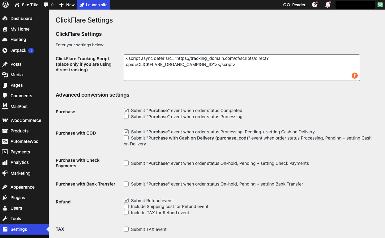 Now that ClickFlare is configured, let’s complete the WooCommerce integration.