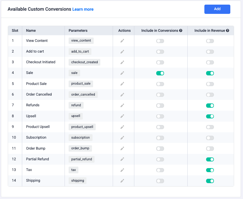 Go to Settings → Custom Conversions