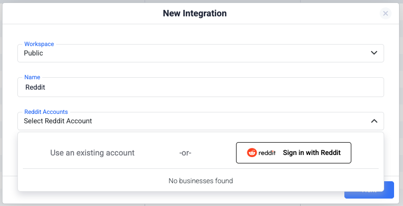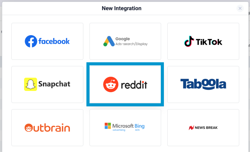 From the list of available integrations, select Reddit.