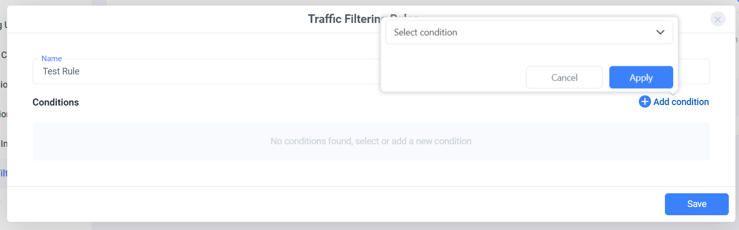 - To add a new traffic filtering rule, click on Add Filtering Rule on the right.