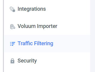 On the Settings List, you'll find Traffic Filtering right above Security.